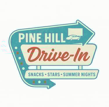 Welcome to Shop the Story, where the worlds inside Brett Bacon’s fiction come to life. Each design is pulled straight from the pages of his books — nostalgic, funny, and a little bit haunting. Whether it’s a souvenir tee from the Pine Hill Drive-In, a relic from the Burger Barn, or a warning label disguised as a toy ad, these pieces capture the strange, wonderful spirit of 1968 Americana that inspired The Knight at the Top of the Stairs and beyond.